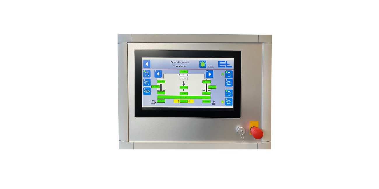 兩架 CCD 線陣相機捕捉外部邊緣或下面外襯板上的控制線。位置控制器將壓切機的目標位置與實際位置進行比較,並向伺服驅動器發出相應的修正訊號,使壓切機在瓦楞紙板幅面中部追蹤。襯板幅面 目的是減少邊緣切割,並且在印刷後對襯板幅面精確地進行縱向切割。